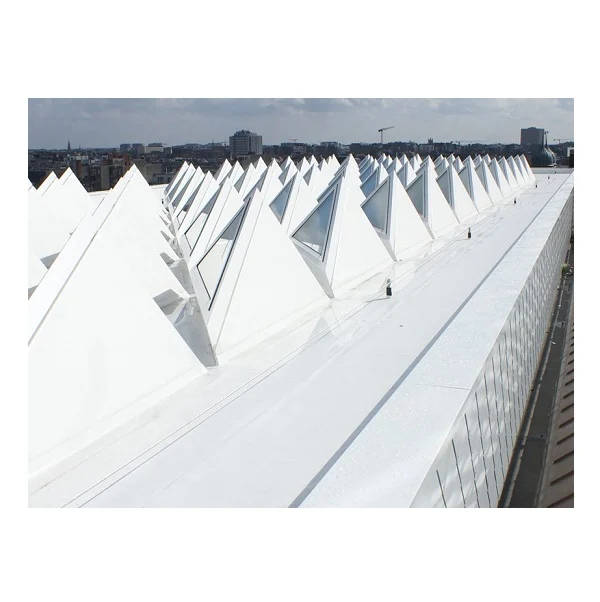 Ryškiai baltos spalvos, specialiu laku dengta PVC membrana turinti saulės atspindžio indeksą SRI 115.